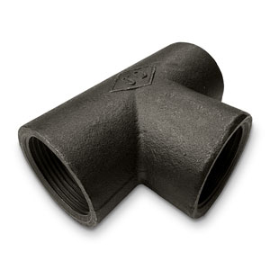 An Intrinsic® mild steel female BSPT threaded equal tee pipe fitting in self colour (black) finish to EN10241.
